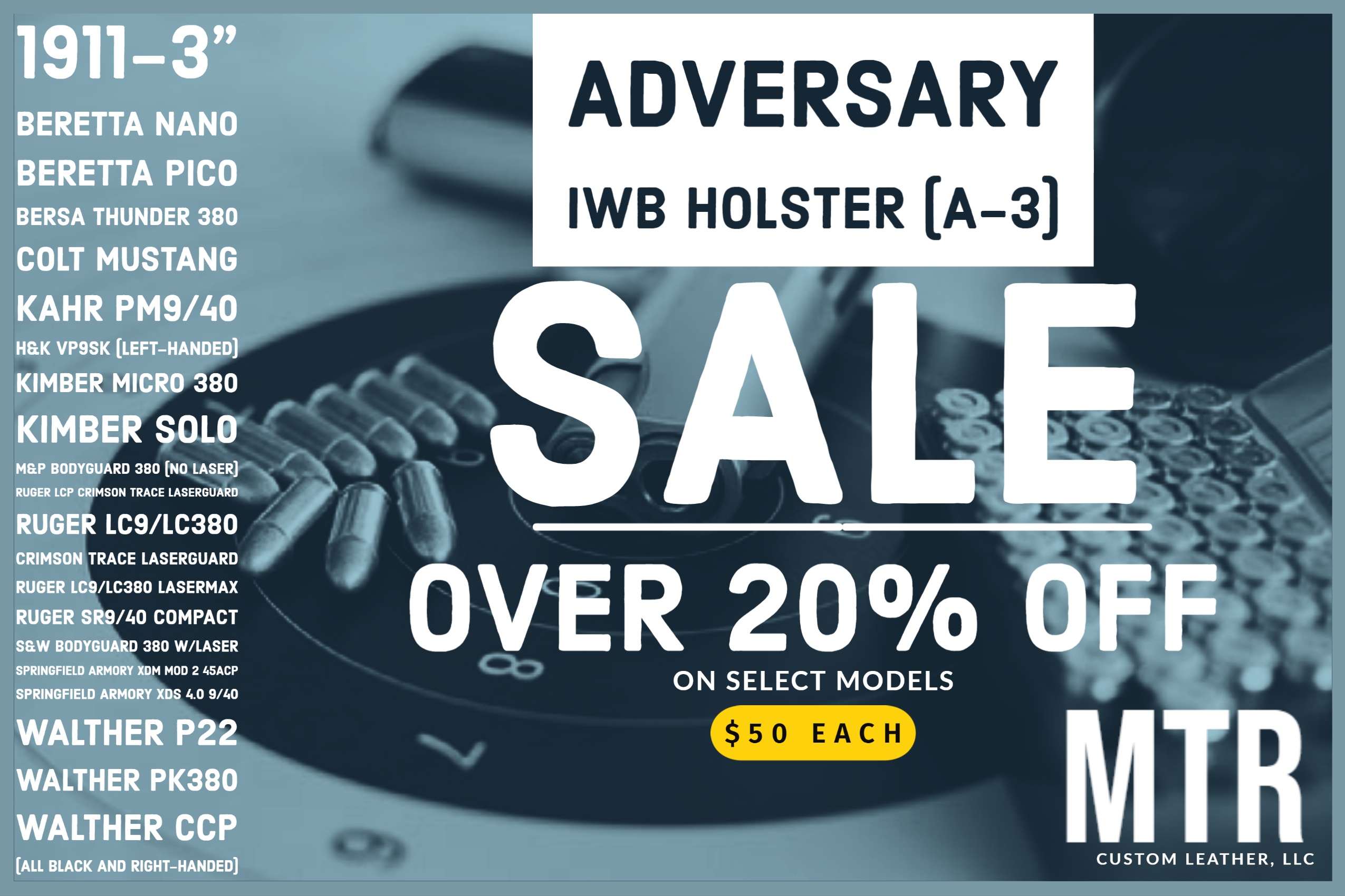 Here you will find holsters that are on sale. Some of these holsters are pre broken in, slightly used, some wear marks, a few scratches. These holsters are a bargain. They are half off the retail value. You will save 10-50% off. All of the holsters are made from top grain leather with heavy duty nylon stitching. The quality of the leather and materials are the same. There is no return or refund for any holsters, belts, or accessories in the clearance category. These holsters are available for same day shipping if ordered before 1pm EST (during business hours) or next business day.