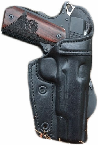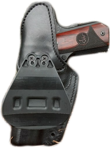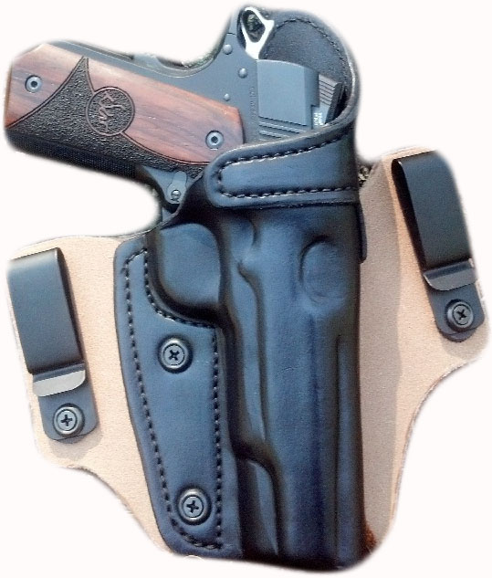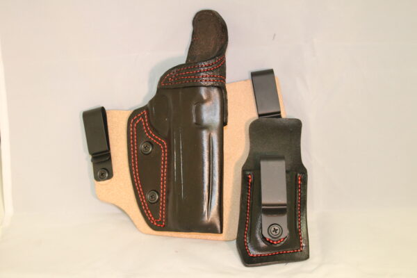 The Sentinel Holster has some very unique features such as: A Custom cut sweat shield for every handgun giving each holster a combat cut (see FAQ page for details on combat cut), full length coverage on each handgun with hand boning for a professional and very detailed holster, a flat back pad for a more than excellent comfort feeling for all day wear with smooth side leather facing the body, adjustment for ride height, and a paddle with all necessary hardware to convert the holster to an OWB paddle holster. The Sentinel holster has comfort, full coverage, and very many thought after design features for your IWB needs. This holster is perfect for professional, range, and everyday use. Being able to convert this holster is ideal for year round use. IWB tuckable for warmer seasons and OWB paddle holster for fall and winter months. From use of the paddle holster, it is a perfect holster for practicing, range use, and for people that don’t necessarily wear a belt.The holster clips can fit up to 1-1/2 gunbelt(2 layer) or 1-3/4 regular belt (1 layer).