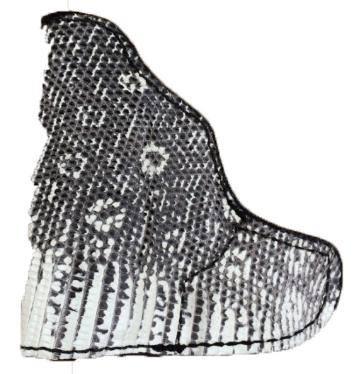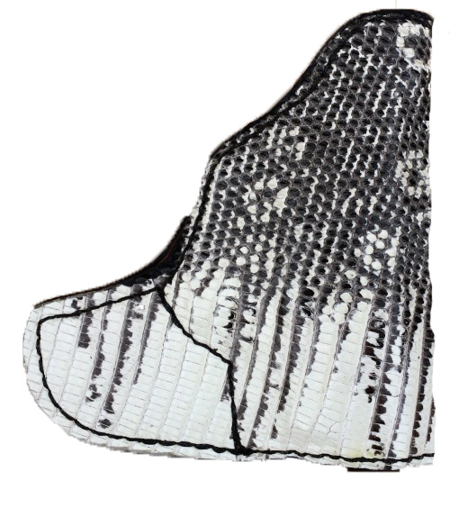 Front Pocket Holster (B-7) is a very simple yet effective holster for carry of small .380, 9mm and a small snub nose .38/.357. The front pocket design is small sleeve that encases the barrel and trigger guard of the weapon. Allowing easy access to the weapon.